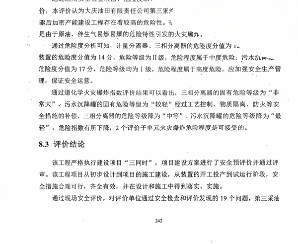 該工程嚴格執(zhí)行建設(shè)項目“三同時”,項目建設(shè)方案進行了安全預(yù)評價并通過評審。該工程項目從初步設(shè)計到項目的施工建設(shè),從裝置的開工投產(chǎn)到試運行階段,安全措施合理可行,齊全有效,并在設(shè)計和施工中得到落實、實施。 通過現(xiàn)場安全評價,對評價單位通過安全檢查和評價發(fā)現(xiàn)的19個問題,第三采油廠均能認真對待,積極整改,現(xiàn)已整改完成。 結(jié)論:大慶油田有限責任公司第三采油廠薩北開發(fā)區(qū)北二西西塊一類油層聚驅(qū)后加密產(chǎn)能建設(shè)工程安全設(shè)施符合“三同時”要求,試運行情況良好,安全生產(chǎn)管理有效,具備安全驗收的條件。 |