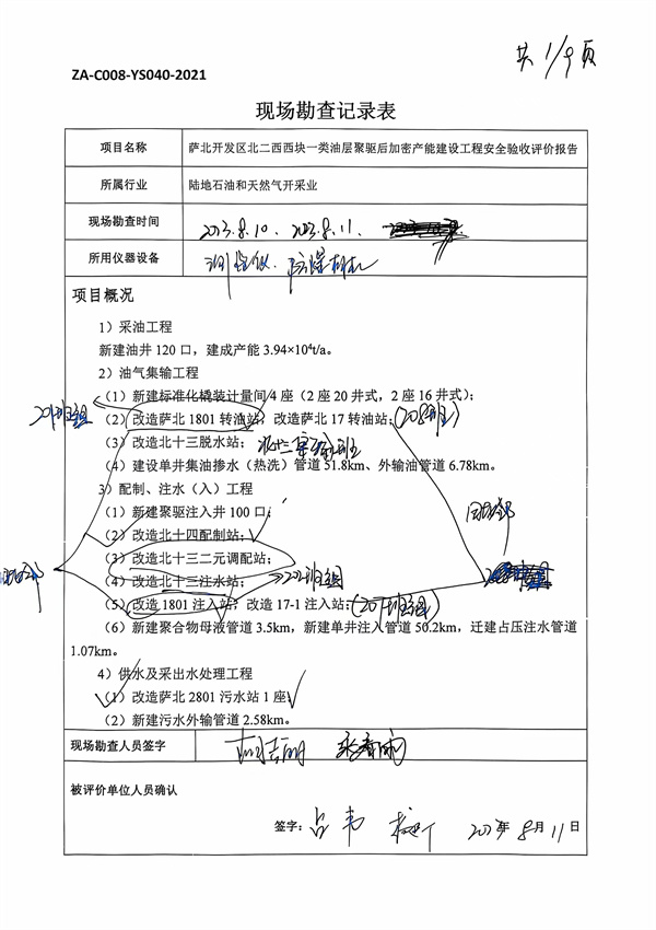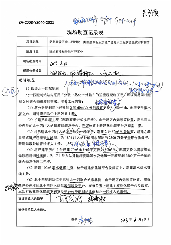 大慶油田有限責任公司第三采油廠薩北開發(fā)區(qū)北二西西塊一類油層聚驅(qū)后加密產(chǎn)能建設(shè)工程安全驗收評價報告 |