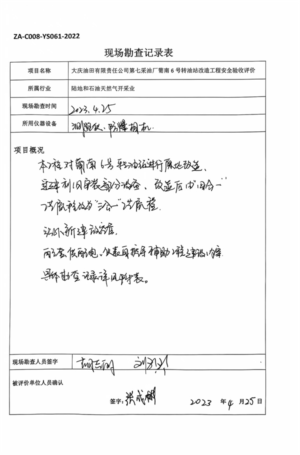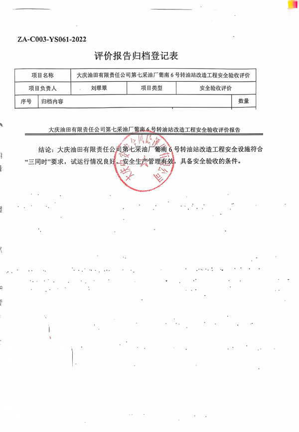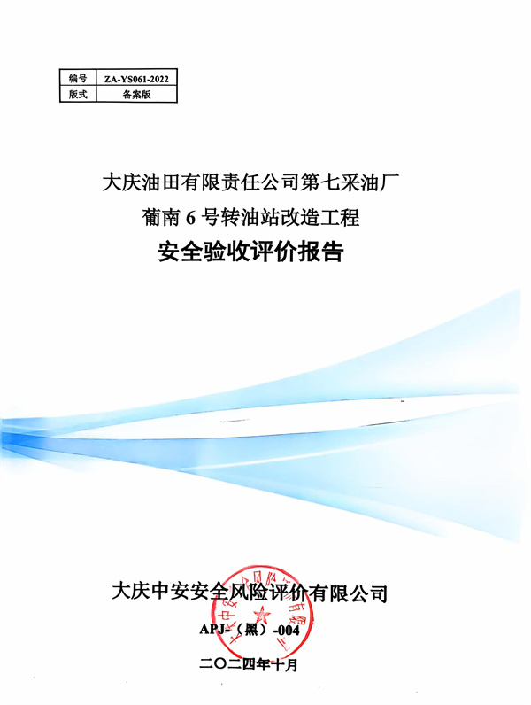 大慶油田有限責任公司第七采油廠葡南6號轉油站改造工程安全驗收評價報告 |