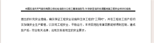 中國石油天然氣股份有限公司吐哈油田分公司三塘湖油田馬56塊致密油開發(fā)調整地面工程方案采取的安全技術措施和安全設施符合國家有關法律法規(guī)、標準、規(guī)范的要求。建設單位應在其今后的設計、施工和運行中進一步落實本工程方案提出的安全技術措施和預評價報告中提出的補充安全措施,確實保證工程安全設施和主體工程的“三同時”,并在工程竣工投產后切實加強安全生產管理,以實現工程安全、平穩(wěn)運行,本項目危險有害因素能夠得到控制,建成投產后,符合有關法律、法規(guī)及標準規(guī)定的安全要求。