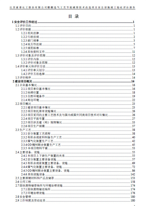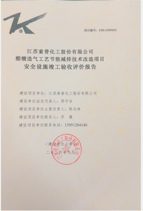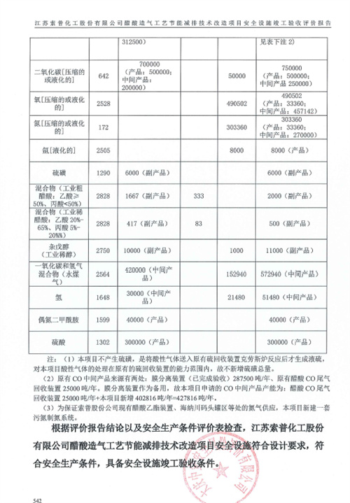 江蘇索普化工股份有限公司醋酸造氣工藝節(jié)能減排技術改造項目安全設施竣工驗收評價報告 |