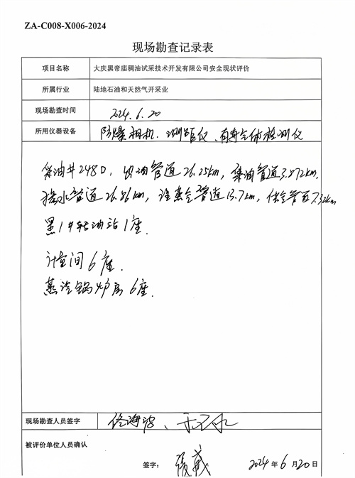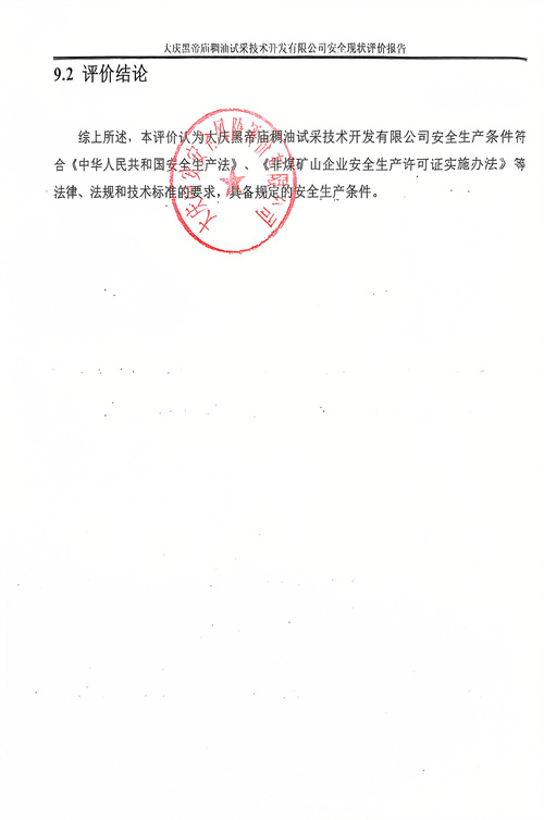 大慶黑帝廟稠油試采技術(shù)開發(fā)有限公司安全現(xiàn)狀評價報告