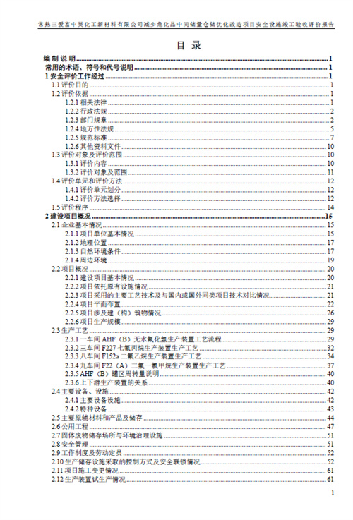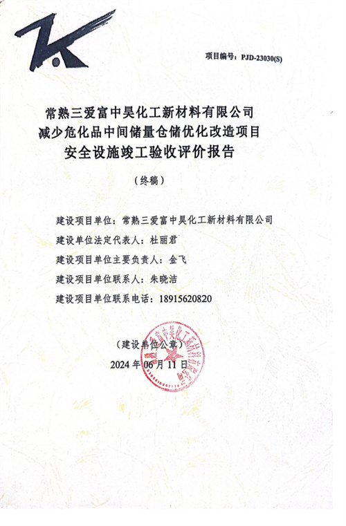 常熟三愛(ài)富中昊化工新材料有限公司減少?;分虚g儲(chǔ)量倉(cāng)儲(chǔ)優(yōu)化改造項(xiàng)目 安全設(shè)施竣工驗(yàn)收評(píng)價(jià)報(bào)告
