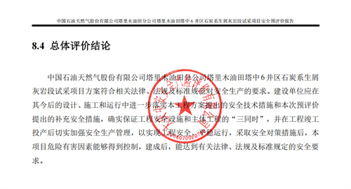中國石油天然氣股份有限公司塔里木油田分公司塔里木油田塔中6井區(qū)石炭系生屑灰?guī)r段試采項目安全預(yù)評價報告