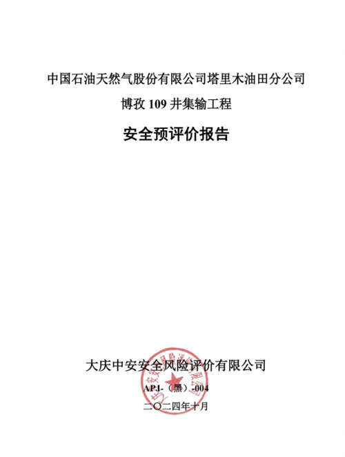 中國石油天然氣股份有限公司塔里木油田分公司博孜109井集輸工程安全預(yù)評價報告