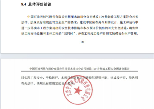 中國石油天然氣股份有限公司塔里木油田分公司博孜109井集輸工程安全預(yù)評價報告 |