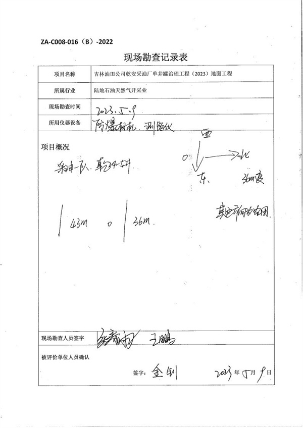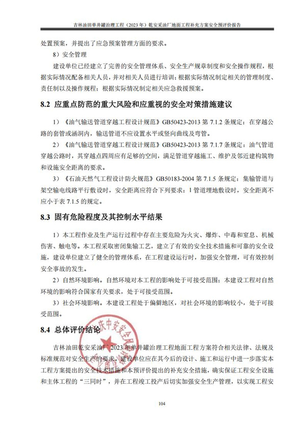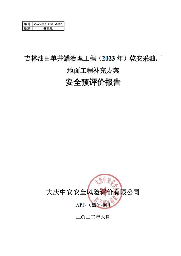 吉林油田單井罐治理工程(2023年)乾安采油廠地面工程補(bǔ)充方案 安全預(yù)評價(jià) |