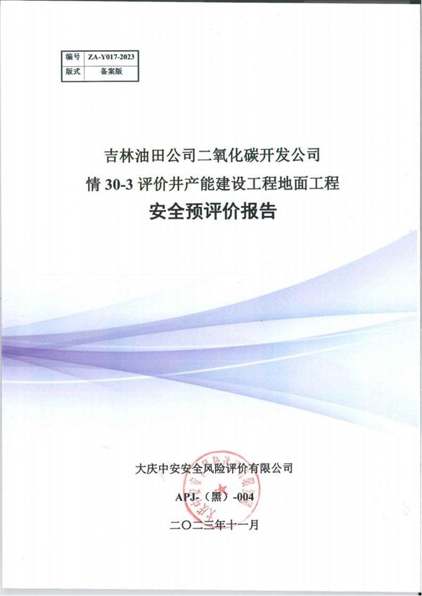 吉林油田公司二氧化碳開發(fā)公司情30-3評(píng)價(jià)井產(chǎn)能建設(shè)工程地面工程 安全預(yù)評(píng)價(jià) |
