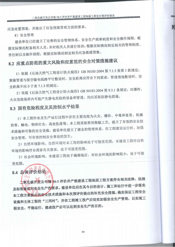 二氧化碳開發(fā)公司情30-3評(píng)價(jià)井產(chǎn)能建設(shè)工程地面工程方案符合相關(guān)法律、法規(guī)及標(biāo)準(zhǔn)規(guī)范對(duì)安全生產(chǎn)的要求。建設(shè)單位應(yīng)在其今后的設(shè)計(jì)、施工和運(yùn)行中進(jìn)一步落實(shí)本工程方案提出的安全技術(shù)措施和本次預(yù)評(píng)價(jià)提出的補(bǔ)充安全措施,確實(shí)保證工程安全設(shè)施和主體工程的“三同時(shí)”,并在工程竣工投產(chǎn)后切實(shí)加強(qiáng)安全生產(chǎn)管理,以實(shí)現(xiàn)工程安全、平穩(wěn)運(yùn)行,建成投產(chǎn)后可以達(dá)到安全生產(chǎn)的目的。 |