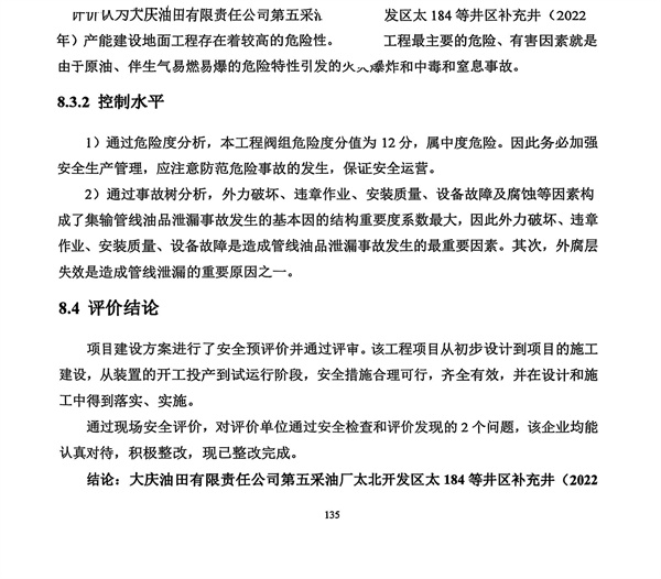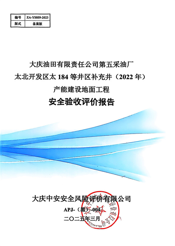 大慶油田有限責(zé)任公司第五采油廠太北開發(fā)區(qū)太184等井區(qū)補充井(2022年)產(chǎn)能建設(shè)地面工程安全驗收評價報告 |