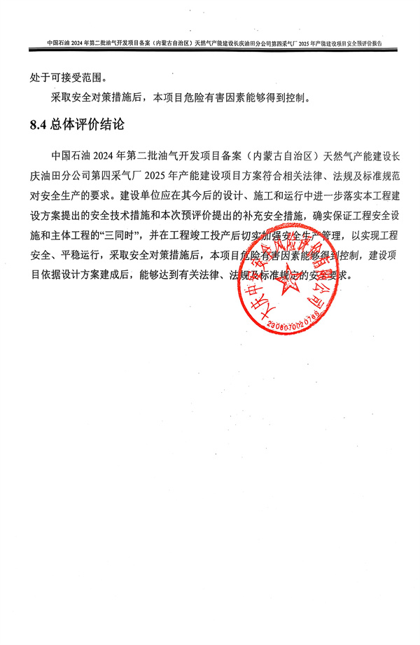 中國(guó)石油2024年第二批油氣開(kāi)發(fā)項(xiàng)目備案(內(nèi)蒙古自治區(qū))天然氣產(chǎn)能建設(shè)長(zhǎng)慶油田分公司第四采氣廠2025年產(chǎn)能建設(shè)項(xiàng)目安全預(yù)評(píng)價(jià)報(bào)告 |