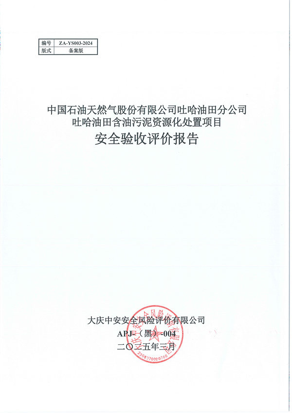 中國石油天然氣股份有限公司吐哈油田分公司吐哈油田含油污泥資源化處置項(xiàng)目安全驗(yàn)收評(píng)價(jià)報(bào)告