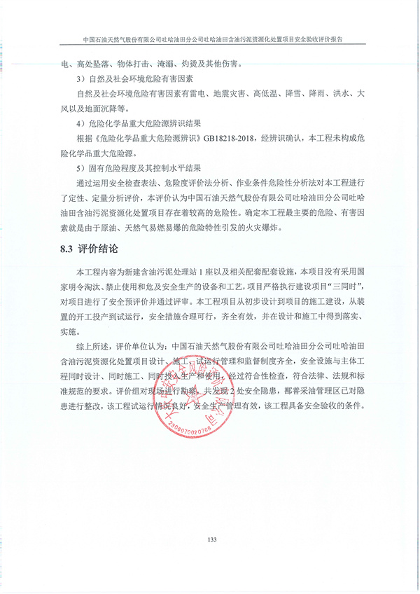 中國石油天然氣股份有限公司吐哈油田分公司吐哈油田含油污泥資源化處置項(xiàng)目 安全驗(yàn)收評(píng)價(jià)報(bào)告