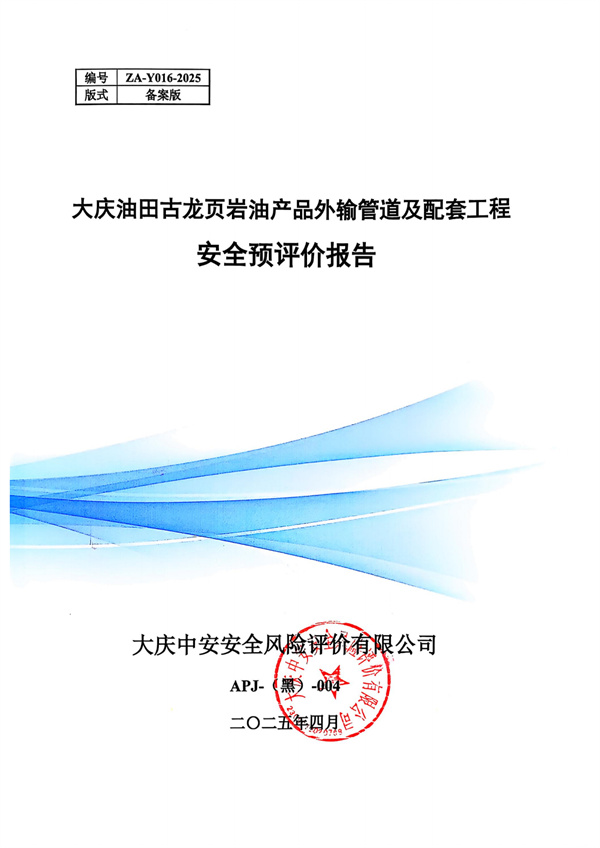 大慶油田古龍頁(yè)巖油產(chǎn)品外輸管道及配套工程安全預(yù)評(píng)價(jià)報(bào)告