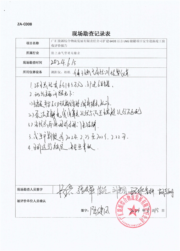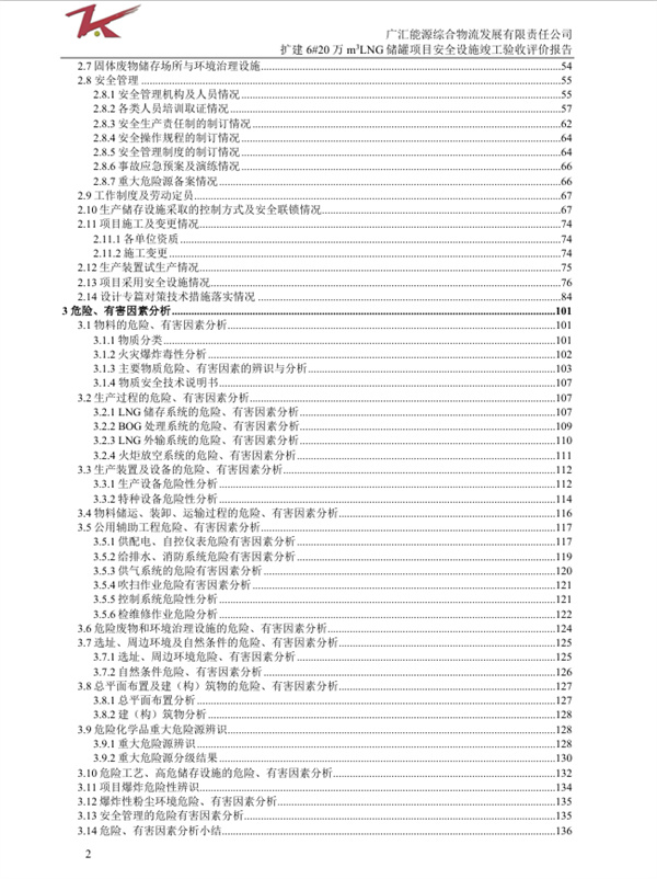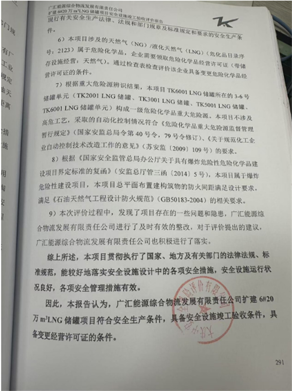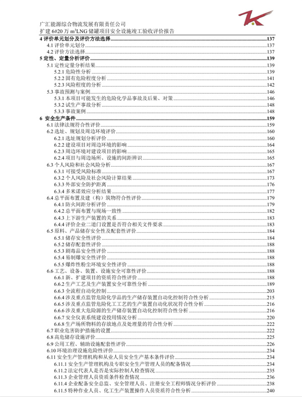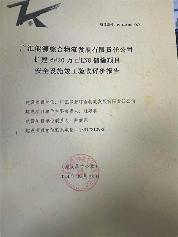 廣匯能源綜合物流發(fā)展有限責任公司擴建6#20萬m3LNG儲罐項目安全設施竣工驗收評價報告