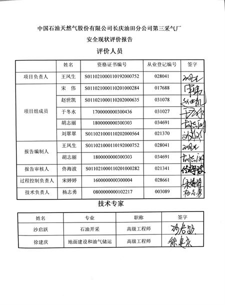 中國石油天然氣股份有限公司長慶油田分公司第三采氣廠安全現(xiàn)狀評(píng)價(jià) |