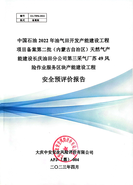 中國石油2022年油氣田開發(fā)產(chǎn)能建設(shè)工程項目備案第二批(內(nèi)蒙古自治區(qū))天然氣產(chǎn)能建設(shè)長慶油田分公司第三采氣廠蘇49風(fēng)險作業(yè)服務(wù)區(qū)塊產(chǎn)能建設(shè)工程安全預(yù)評價報告