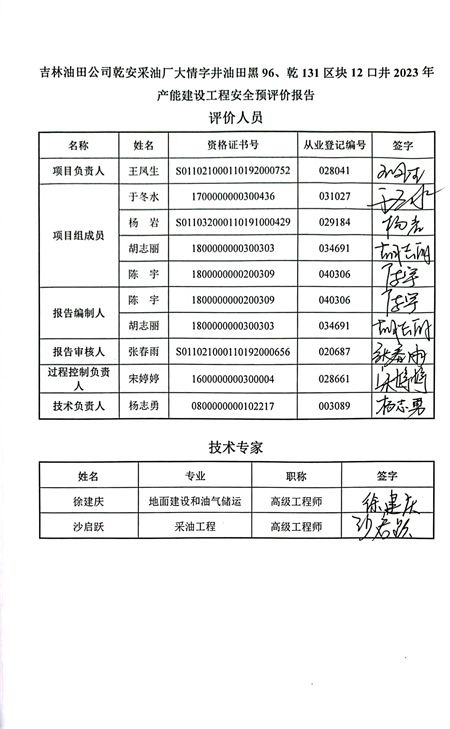 吉林油田公司乾安采油廠大情字井油田黑96、乾131區(qū)塊12口井2023年產(chǎn)能建設(shè)工程安全預(yù)評(píng)價(jià)報(bào)告 |