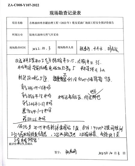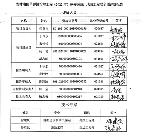 吉林油田單井罐治理工程(2022年)乾安采油廠地面工程安全評價(jià)報(bào)告
