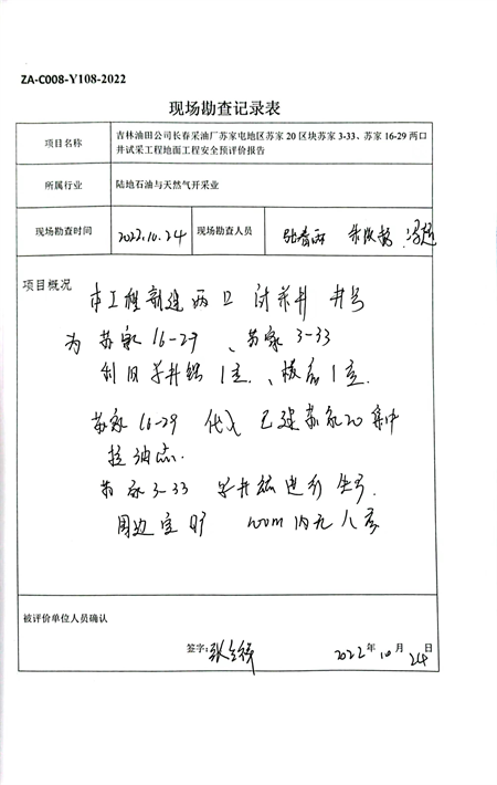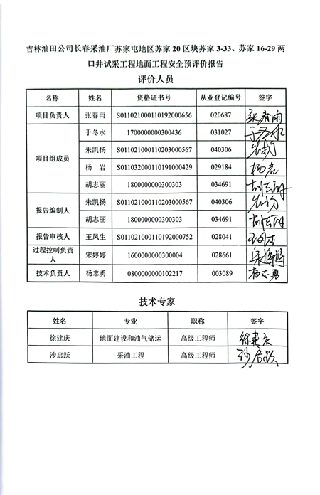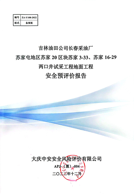 吉林油田公司長(zhǎng)春采油廠蘇家屯地區(qū)蘇家20區(qū)塊蘇家3-33、蘇家16-29兩口井試采工程地面工程安全預(yù)評(píng)價(jià) |