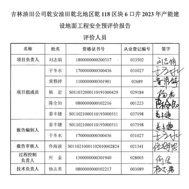 吉林油田公司乾安油田乾北地區(qū)乾118區(qū)塊6口井2023年產(chǎn)能建設(shè)地面工程安全預(yù)評價(jià)報(bào)告