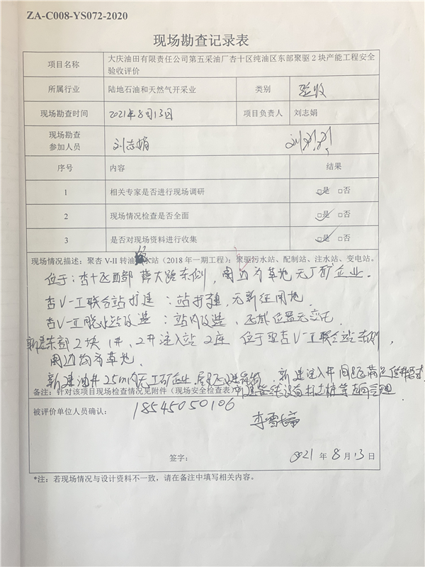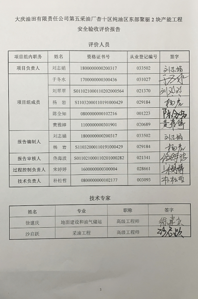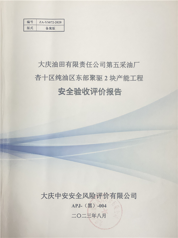 大慶油田有限責(zé)任公司第五采油廠杏十區(qū)純油區(qū)東部聚驅(qū)2塊產(chǎn)能工程安全驗(yàn)收評(píng)價(jià)報(bào)告