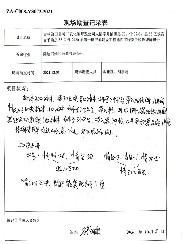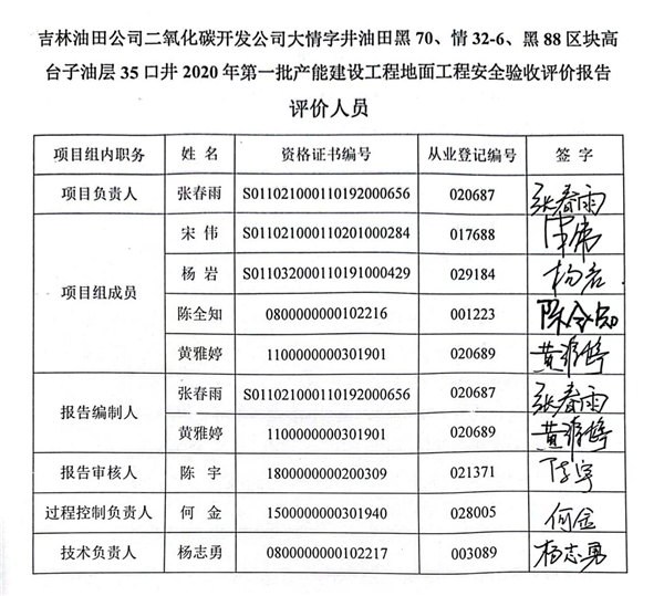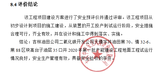 吉林油田公司二氧化碳開發(fā)公司大情字井油田黑70、情32-6、黑88區(qū)塊高臺子油層35口井2020年第一批產(chǎn)能建設(shè)工程地面工程安全驗收評價報告 |