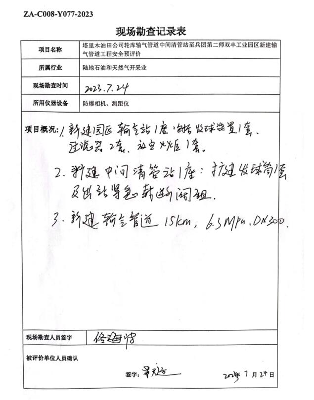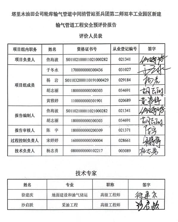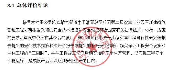 塔里木油田公司輪庫輸氣管道中間清管站至兵團第二師雙豐工業(yè)園區(qū)新建輸氣管道工程安全預評價報告 |