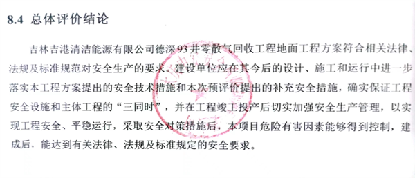吉林吉港清潔能源有限公司德深93井零散氣回收工程地面工程方案符合相關(guān)法律、法規(guī)及標(biāo)準(zhǔn)規(guī)范對安全生產(chǎn)的要求。建設(shè)單位應(yīng)在其今后的設(shè)計、施工和運行中進(jìn)一步落實本工程方案提出的安全技術(shù)措施和本次預(yù)評價提出的補(bǔ)充安全措施,確實保證工程安全設(shè)施和主體工程的“三同時”,并在工程竣工投產(chǎn)后切實加強(qiáng)安全生產(chǎn)管理,以實現(xiàn)工程安全、平穩(wěn)運行,采取安全對策措施后,本項目危險有害因素能夠得到控制,建成后,能達(dá)到有關(guān)法律、法規(guī)及標(biāo)準(zhǔn)規(guī)定的安全要求。