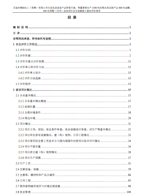艾迪科精細(xì)化工(常熟)有限公司引進(jìn)先進(jìn)設(shè)備產(chǎn)品轉(zhuǎn)型升級,等量替換生產(chǎn)2500 噸抗氧化劑及副產(chǎn)品600 噸鹽酸、965 噸苯酚(自用)技改項(xiàng)目符合安全生產(chǎn)條件,具備安全設(shè)施竣工驗(yàn)收條件。