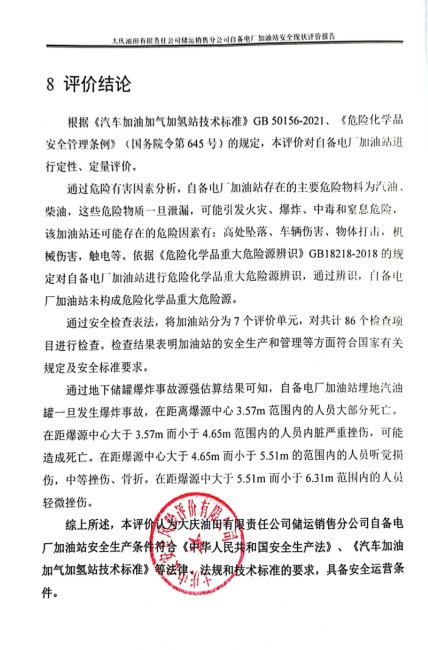 大慶油田有限責(zé)任公司儲(chǔ)運(yùn)銷售分公司自備電廠加油站安全現(xiàn)狀評(píng)價(jià)報(bào)告 |
