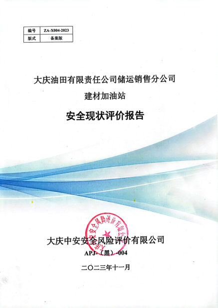 大慶油田有限責(zé)任公司儲運(yùn)銷售分公司建材加油站安全現(xiàn)狀評價(jià)報(bào)告 |