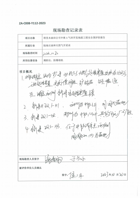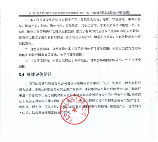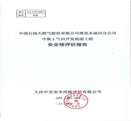 中國石油天然氣股份有限公司塔里木油田分公司中秋1氣田開發(fā)地面工程安全預(yù)評價報告 |