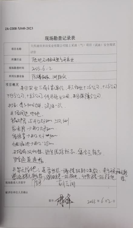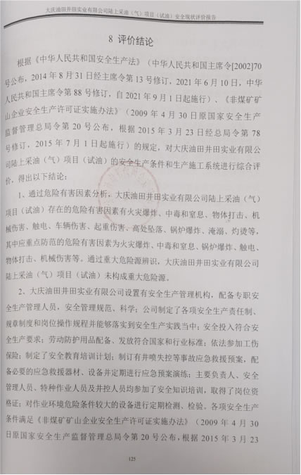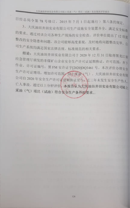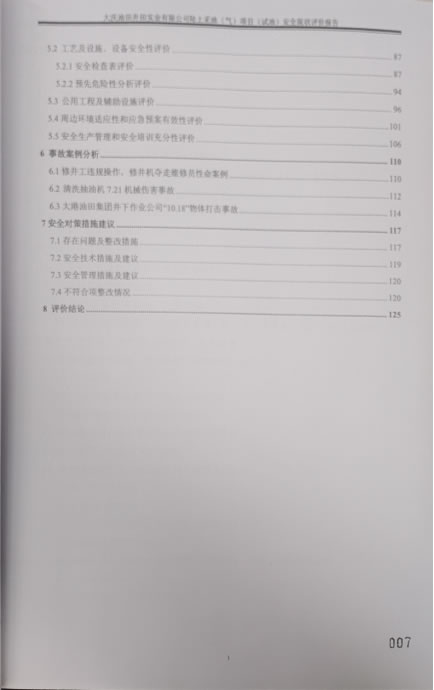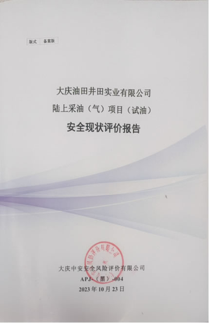 大慶油田井田實(shí)業(yè)有限公司陸上采油(氣)項(xiàng)目(試油)安全現(xiàn)狀評(píng)價(jià)報(bào)告 |