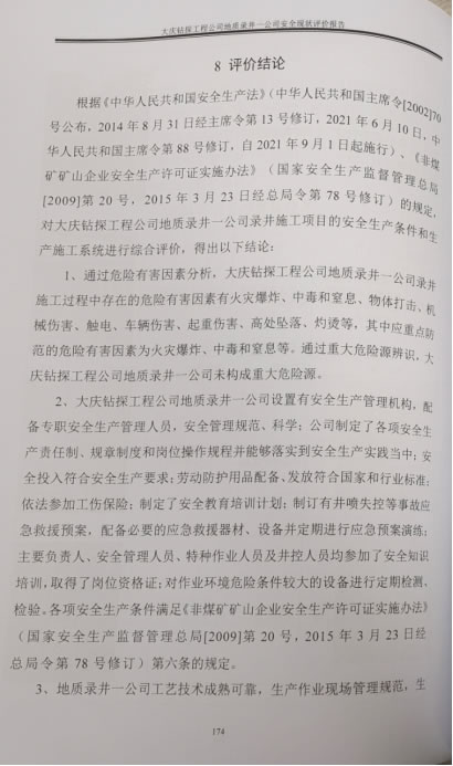 大慶鉆探工程公司地質(zhì)錄井一公司于20200908日取得黑龍江省應(yīng)急管理廳頒發(fā)的非煤礦山企業(yè)安全生產(chǎn)許可證延期換證,許可范圍:錄井,許可證編號:黑FM安許證字[2020]DQ0564號。自2020年安全生產(chǎn)許可證延期換證至今,近三年生產(chǎn)過程中未發(fā)生重大傷亡事故。通過以上分析評價,本報告認(rèn)為大慶鉆探工程公司地質(zhì)錄井一公司符合安全生產(chǎn)條件的要求。