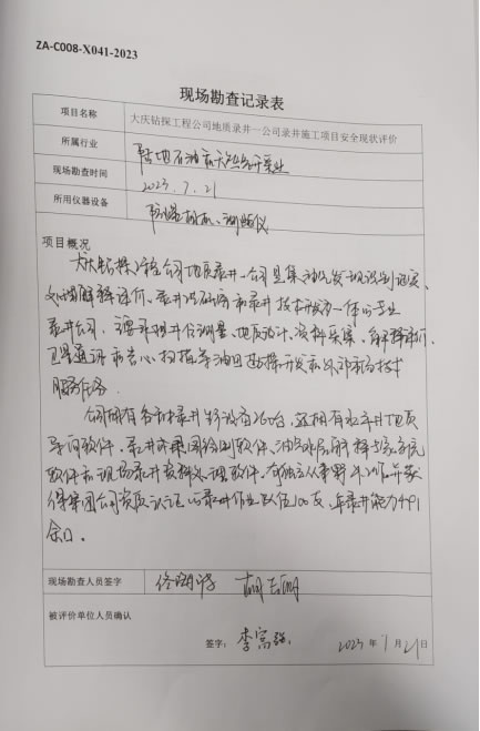大慶鉆探工程公司地質(zhì)錄井一公司錄井施工項目安全現(xiàn)狀評價報告信息公示表