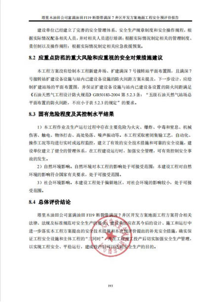 塔里木油田公司富滿油田FI19斷裂帶滿深7井區(qū)開發(fā)方案地面工程方案符合相關(guān)法律、法規(guī)及標準規(guī)范對安全生產(chǎn)的要求。建設(shè)單位應(yīng)在其今后的設(shè)計、施工和運行中進一步落實本工程方案提出的安全技術(shù)措施和本次預(yù)評價提出的補充安全措施,確實保證工程安全設(shè)施和主體工程的“三同時”,并在工程竣工投產(chǎn)后切實加強安全生產(chǎn)管理,以實現(xiàn)工程安全、平穩(wěn)運行,建成投產(chǎn)后可以達到安全生產(chǎn)的目的。 |
