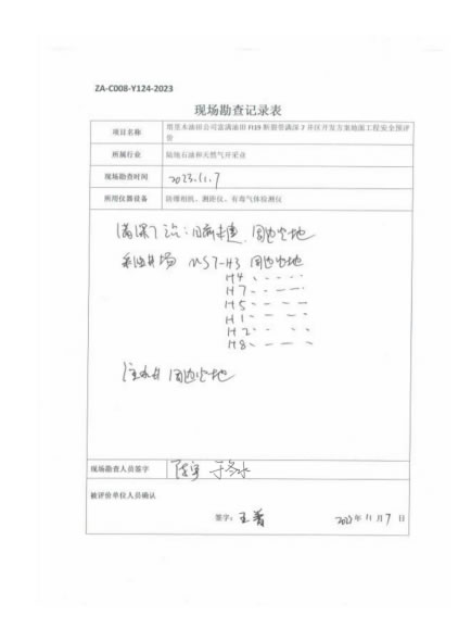 對擴建站場新建設(shè)備與已建設(shè)備的防火間距進行檢查,對新建井場的周邊環(huán)境進行檢查評價。 |