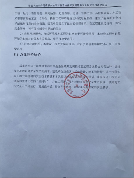 塔里木油田公司桑塔木油田三疊系油藏開發(fā)調(diào)整地面工程安全預評價報告