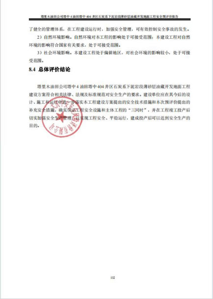 塔里木油田公司塔中4油田塔中404井區(qū)石炭系下泥巖段薄砂層油藏開(kāi)發(fā)地面工程建設(shè)方案符合相關(guān)法律、法規(guī)及標(biāo)準(zhǔn)規(guī)范對(duì)安全生產(chǎn)的要求。建設(shè)單位應(yīng)在其今后的設(shè)計(jì)、施工和運(yùn)行中進(jìn)一步落實(shí)本工程建設(shè)方案提出的安全技術(shù)措施和本次預(yù)評(píng)價(jià)提出的補(bǔ)充安全措施,確實(shí)保證工程安全設(shè)施和主體工程的“三同時(shí)”,并在工程竣工投產(chǎn)后切實(shí)加強(qiáng)安全生產(chǎn)管理,以實(shí)現(xiàn)工程安全、平穩(wěn)運(yùn)行,建成投產(chǎn)后可以達(dá)到安全生產(chǎn)的目的。