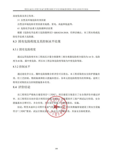 塔里木油田公司塔中采油氣管理區(qū)滿深17井區(qū)塊集輸管道建設工程安全驗收評價報告 |