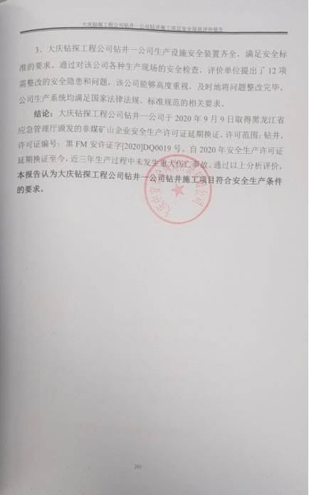 大慶鉆探工程公司鉆井二公司鉆井施工項目安全現(xiàn)狀評價報告信息公示表