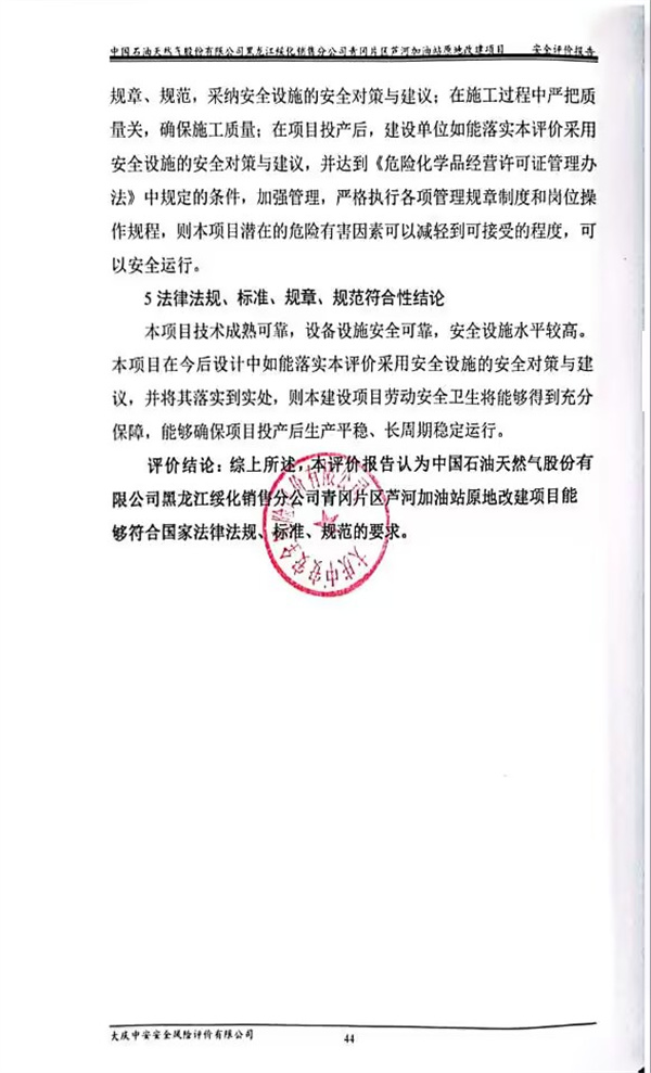 上一篇:中國石油天然氣股份有限公司黑龍江黑河銷售分公司白石砬子加油站原地改建項(xiàng)目安全驗(yàn)收評(píng)價(jià)