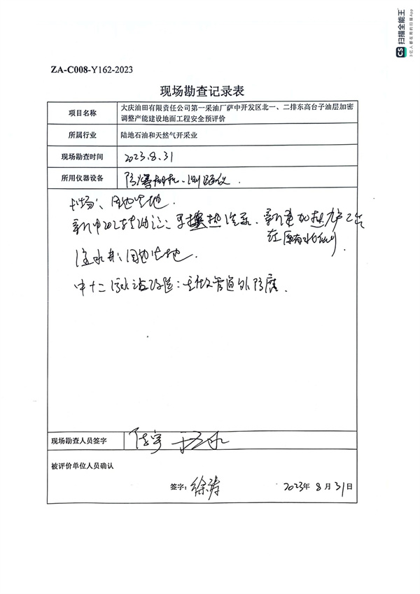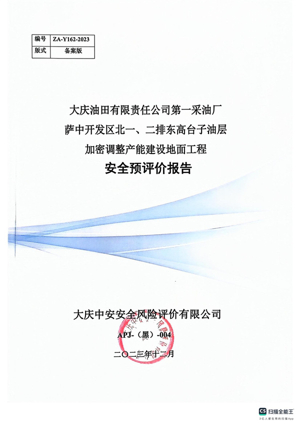 大慶油田有限責任公司第一采油廠薩中開發(fā)區(qū)北一、二排東高臺子油層加密調整產能建設地面工程安全預評價