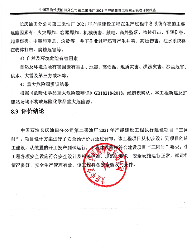 中國石油長慶油田分公司第二采油廠2021年產(chǎn)能建設(shè)工程安全驗收評價報告