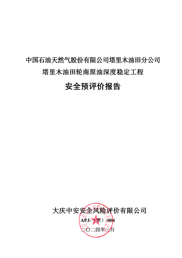中國石油天然氣股份有限公司塔里木油田分公司塔里木油田輪南原油深度穩(wěn)定工程 安全預(yù)評價