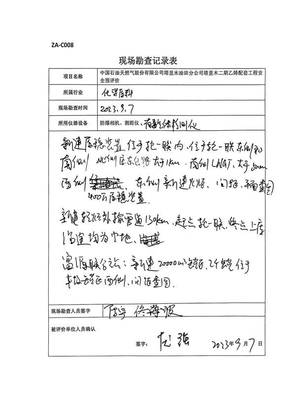 對擴(kuò)建站場新建設(shè)備與已建設(shè)備的防火間距進(jìn)行檢查,對新建管道沿途周邊環(huán)境進(jìn)行檢查評價。 |