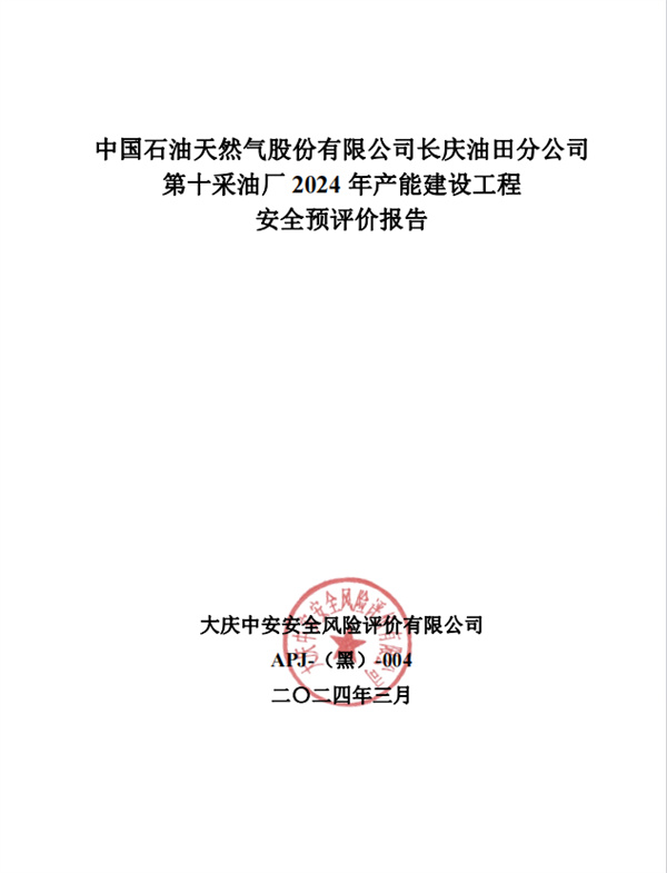 中國(guó)石油天然氣股份有限公司長(zhǎng)慶油田分公司第十采油廠2024年產(chǎn)能建設(shè)工程安全預(yù)評(píng)價(jià)報(bào)告 |