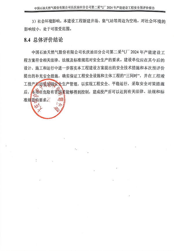 中國(guó)石油天然氣股份有限公司長(zhǎng)慶油田分公司第二采氣廠2024年產(chǎn)能建設(shè)工程安全預(yù)評(píng)價(jià)報(bào)告