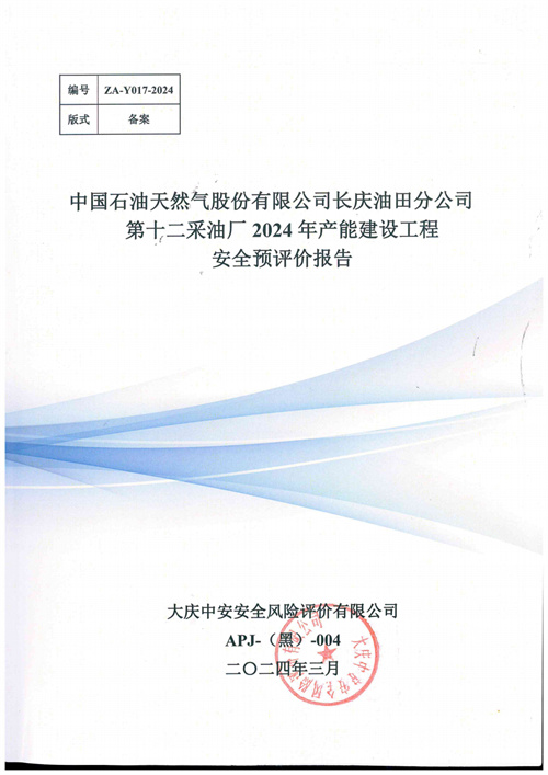 中國(guó)石油天然氣股份有限公司長(zhǎng)慶油田分公司第十二采油廠2024年產(chǎn)能建設(shè)工程安全預(yù)評(píng)價(jià)報(bào)告 |